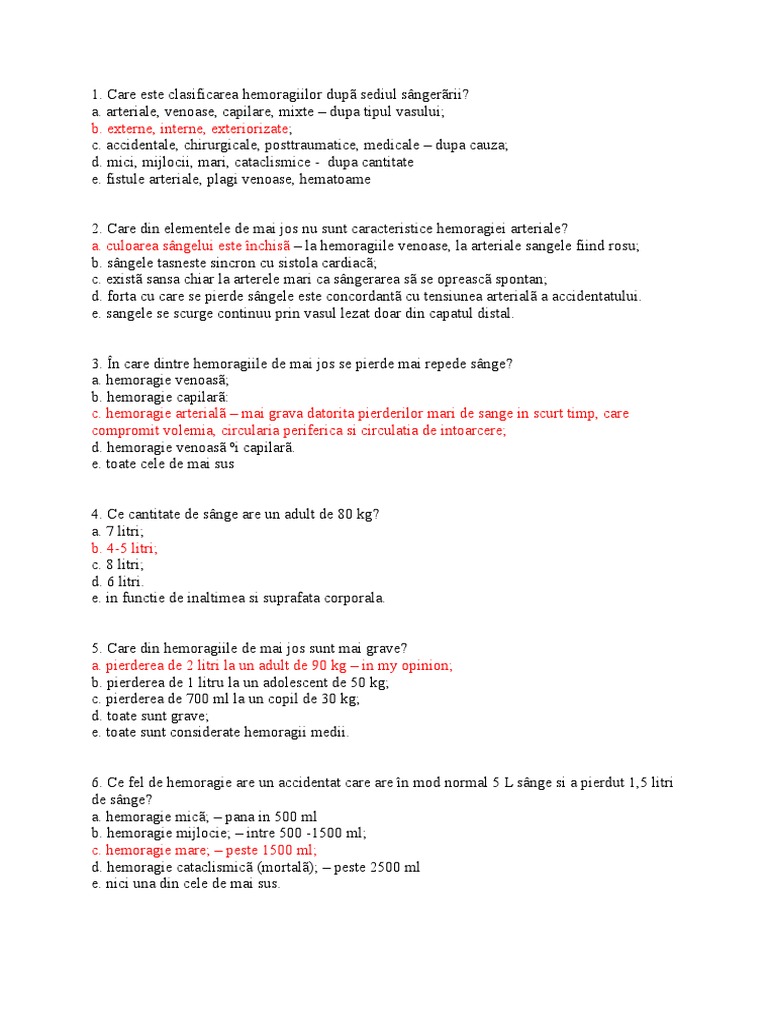 Gravitatea Unei Hemoragii Se Apreciaza ?N Functie De